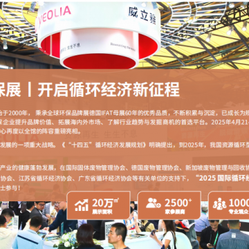 为了进一步推动我国循环经济产业的健康蓬勃发展,在国际固体废物管理协会、德国废物管理协会、新加坡废物管理与回收协会、马来西亚废弃物管理协会、中国循环经济协会、上海市循环经济协会、江苏省循环经济协会、广东省循环经济协会等有关单位的支持下,“2025 国际循环经济专题展览暨论坛”将与2025中国环博会同期举办!诚邀业内人士参与!